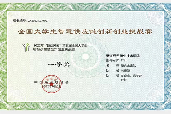 2022年6月16日,由中国商业联合会主办的2022年第五届“链战风云”全国大学生智慧供应链挑战赛落下帷幕,我校工商管理学院现代物流管理专业再创佳绩。两支团队在比赛中分获一等奖、二等奖各一项,并斩获团体总决赛金奖。指导教师杜江获得“优秀指导教师”称号。