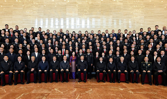 8月20日下午,中共中央总书记、国家主席、中央军委主席习近平在拉萨亲切接见西藏自治区政法干警代表,并同大家合影留念。新华社记者 殷博古 摄